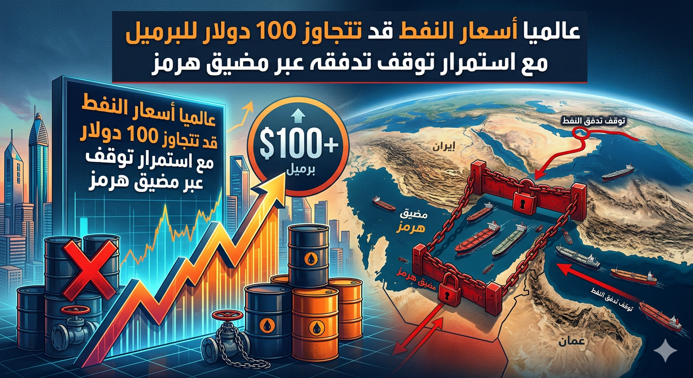 عالميا أسعار النفط قد تتجاوز 100 دولار للبرميل مع استمرار توقف تدفقه عبر مضيق هرمز