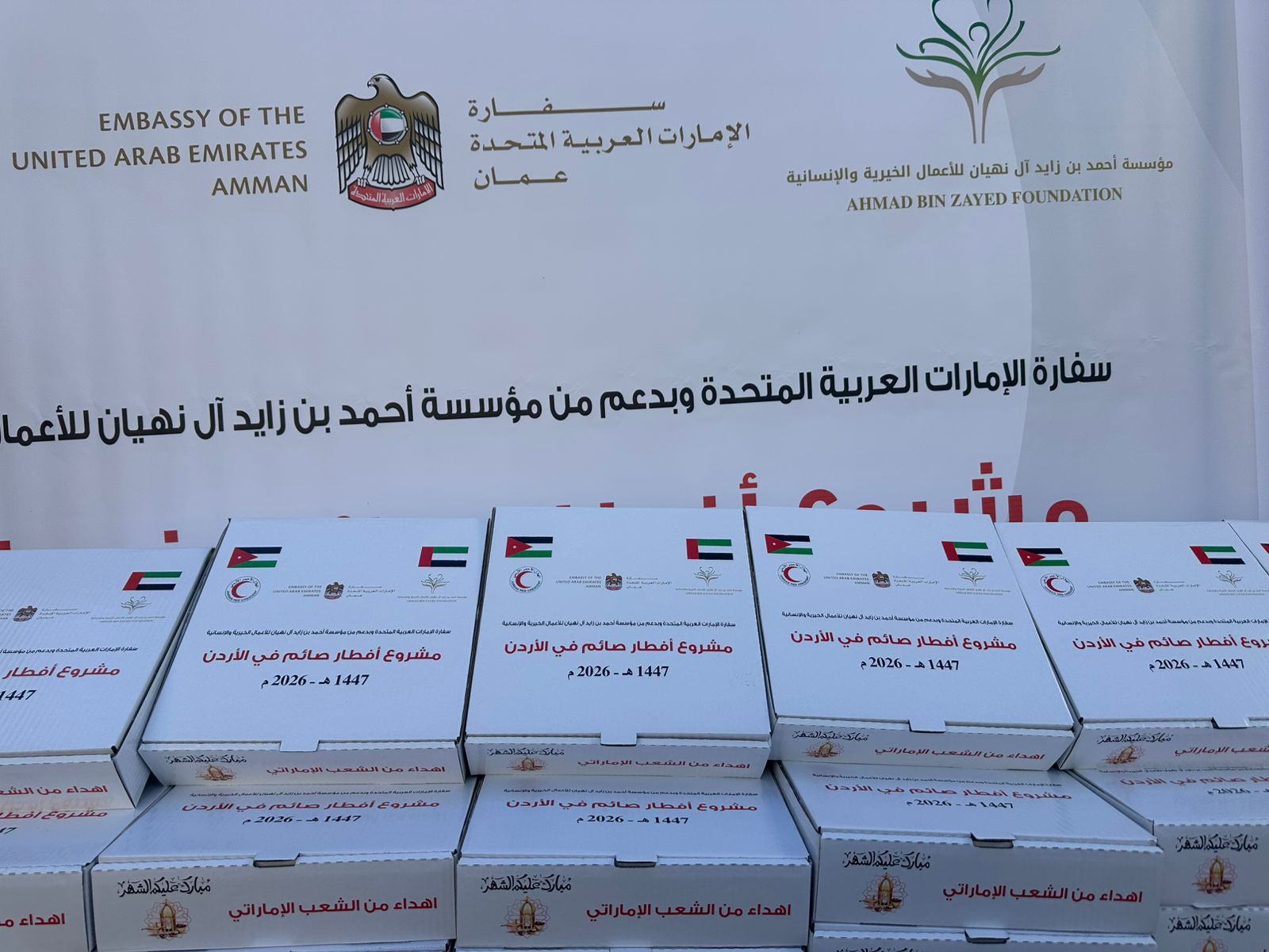 وقد أشرف المستشار حمد المطروشي، القائم بأعمال سفارة دولة الإمارات في عمّان، على تنفيذ هذه المشاريع الخيرية لعام ١٤٤٧ هـ، من خلال توزيع آلاف وجبات الإفطار للصائمين في مناطق عديدة، واقامة الإفطار الجماعي الذي تم تنظيمه للأسر المتعففة والأيتام في عمّان تزامنًا مع “يوم زايد للعمل الإنساني”.