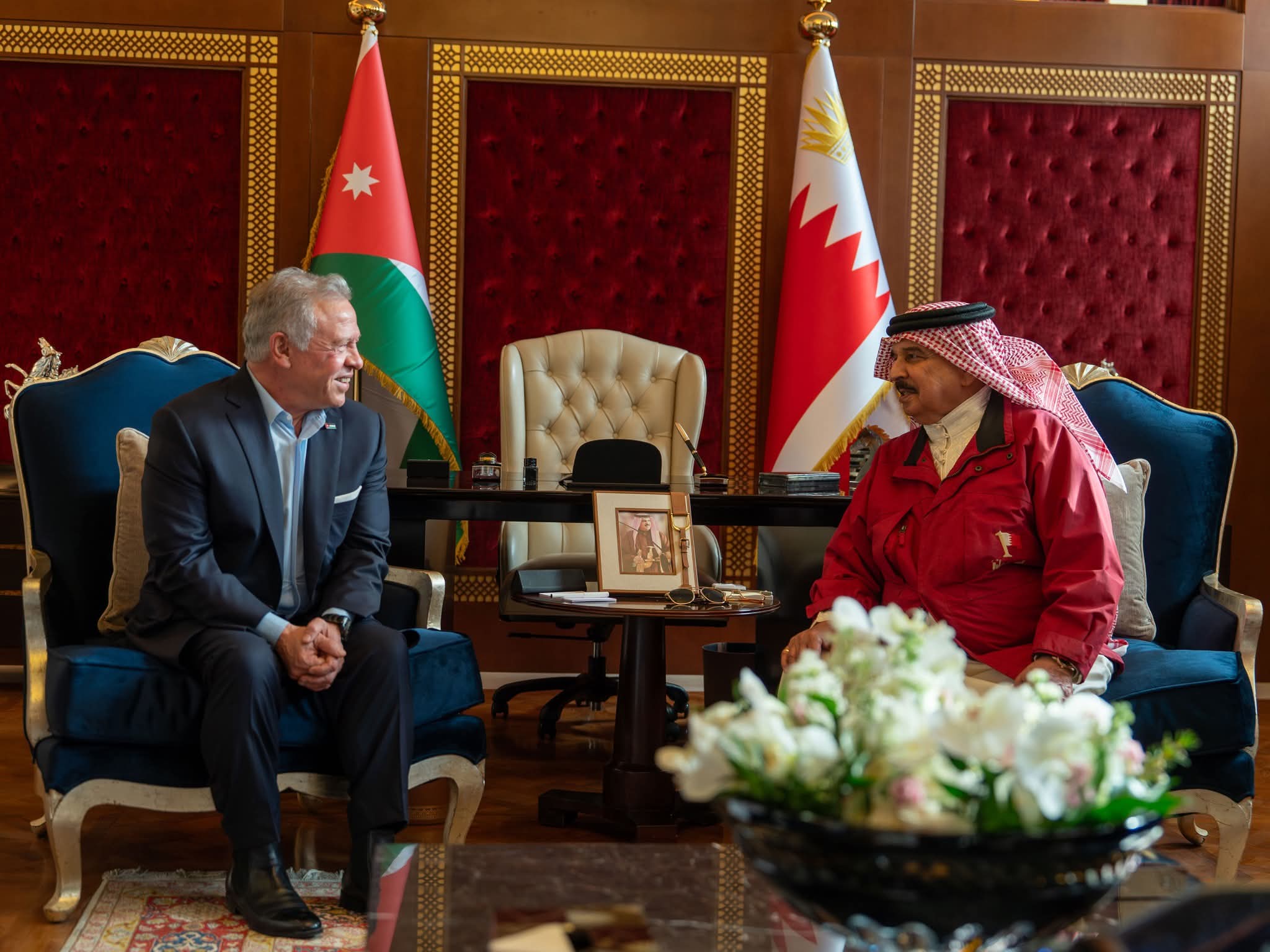 وكان في مقدمة مستقبلي جلالته لدى وصوله، جلالة حمد بن عيسى آل خليفة، ملك مملكة البحرين، حيث جرت مراسم استقبال رسمية تعكس عمق العلاقات الأخوية الراسخة التي تجمع البلدين الشقيقين.