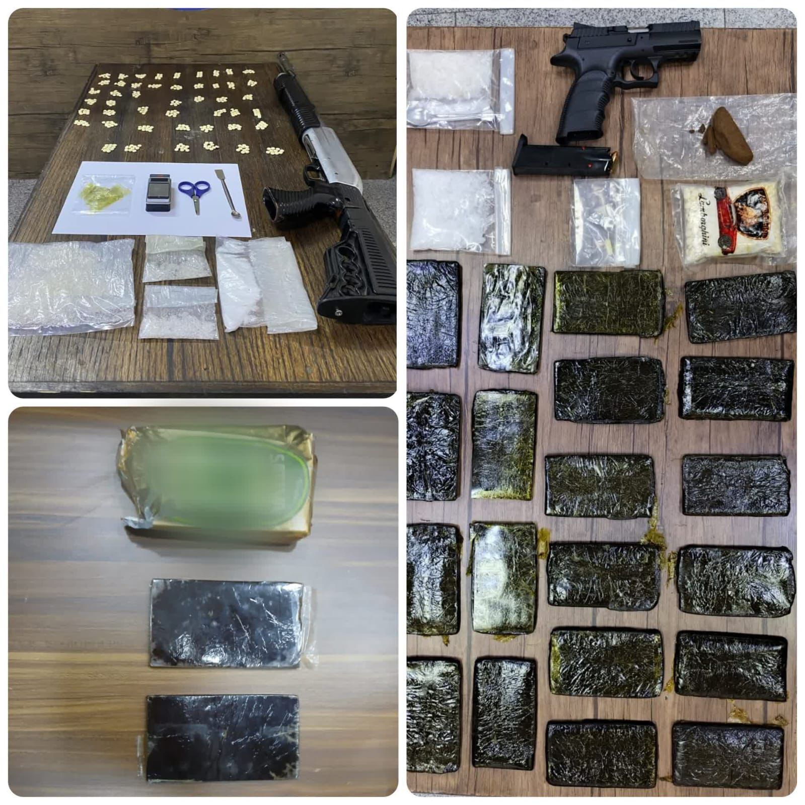 أما في جنوب عمّان، فقد تم التعامل مع 5 قضايا مختلفة، شملت ضبط تاجر بحوزته 8000 حبة مخدرة، وآخر بحوزته نصف كيلو من مادة الكريستال، بالإضافة إلى ضبط 2 كغم من مادة الماريجوانا، وقضية أخرى ضُبط فيها نصف كيلو كريستال، وأخيرًا ضبط 5 كفوف حشيش بحوزة أحد الأشخاص.