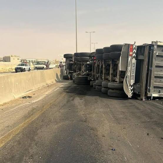 انقلاب شاحنة على طريق الضليل باتجاه الزرقاء يتسبب بأزمة سير خانقة