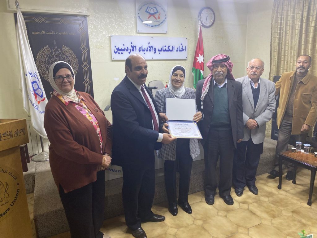 بالأمهات الصالحات كالملكات . وقد تفاعل الحضور مع هذه الامسية الراقية وتم النقاش والمداخلات مع الجمهور وتبادل الأراء .وفي الختام تفضل رئيس الاتحاد الاستاذ عليان العدوان بتكريم المحاضرة د. غادة فارس والمقدمة الاديبة زحل المفتي بتقديم شهادة تقدير لكل منهما على هذا النشاط المميز .