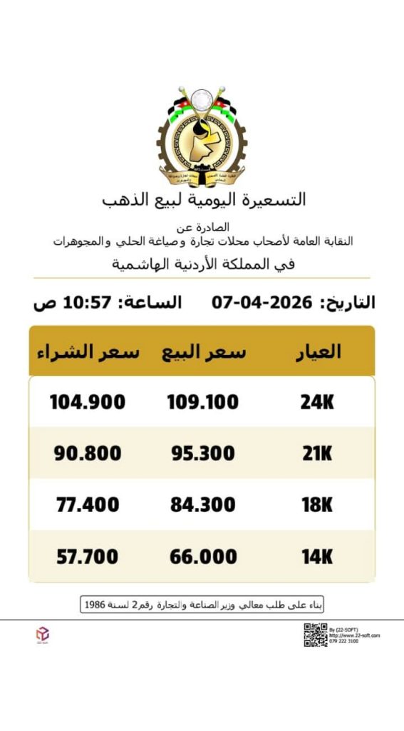 وفي ظل هذه التطورات، يبقى الذهب في الأردن ضمن نطاق متقلب، مع توقعات باستمرار التحركات خلال الفترة المقبلة وفق المعطيات الاقتصادية العالمية.