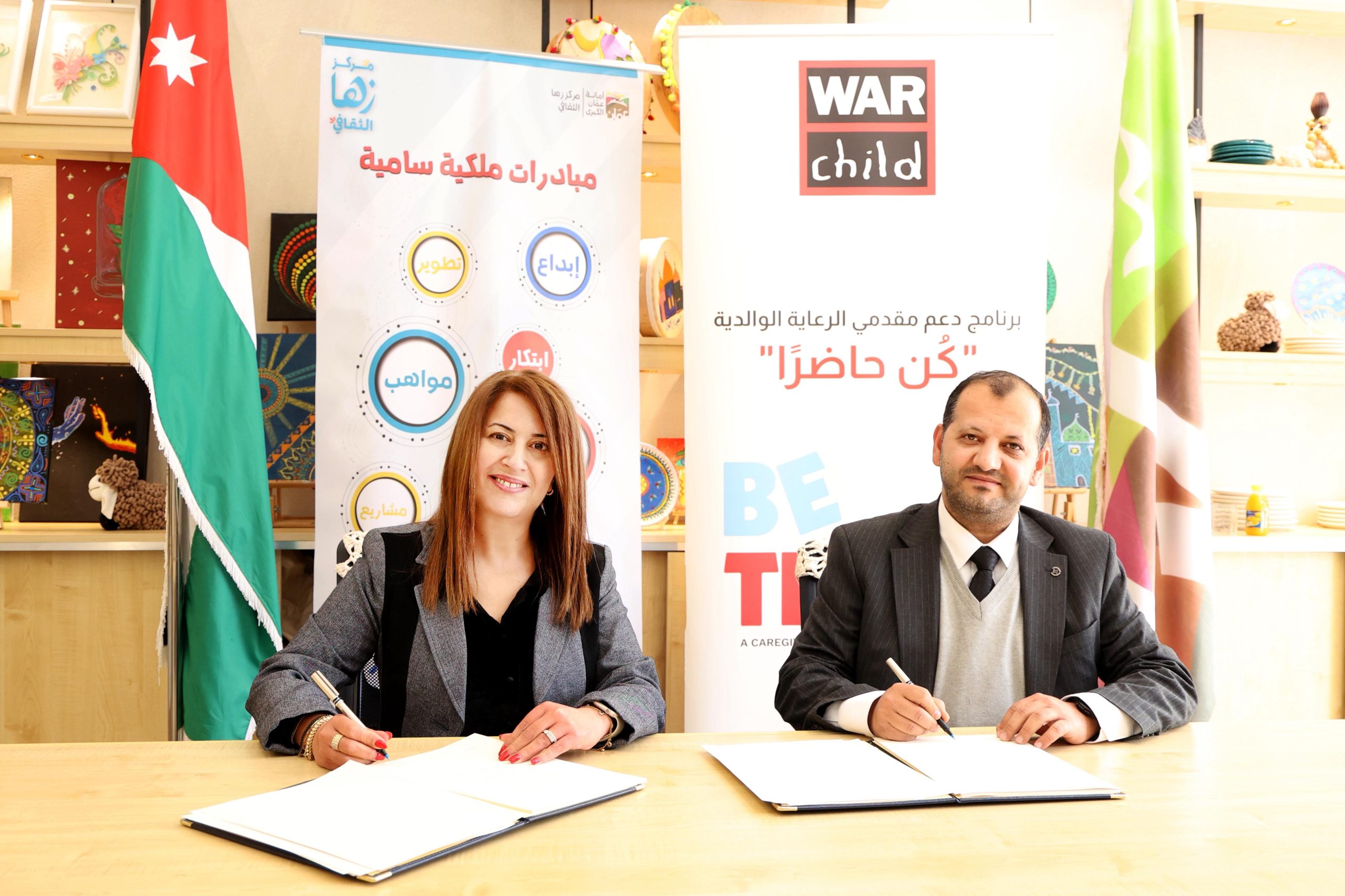 المرفأ- وقّعت منظمة طفل الحرب في الأردن اتفاقية تعاون مع مركز زها الثقافي، بهدف تنفيذ مشروع نوعي يعزز القدرات المؤسسية ويدعم مقدمي الرعاية ضمن برامج مستدامة ترتكز على الرفاه النفسي والرعاية الوالدية.