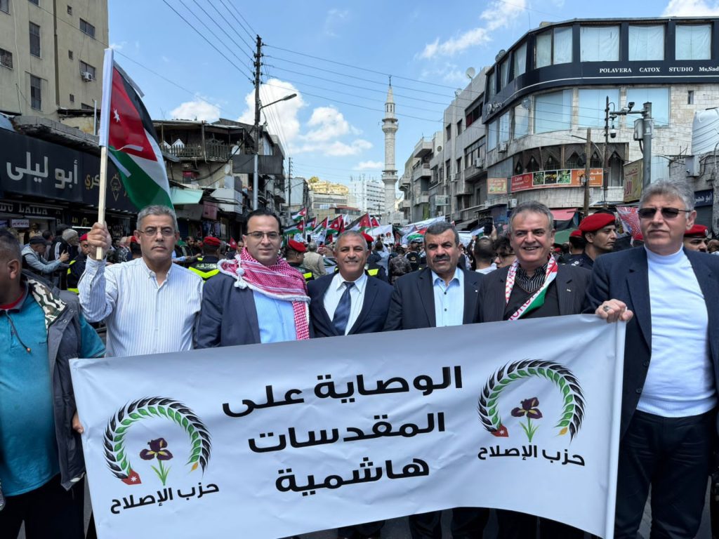 حزب الإصلاح يشارك بقيادته ونوابه وكافة فروعه وأعضائه في المسيرة المركزية دعماً للوصاية الهاشمية ونصرة للقدس