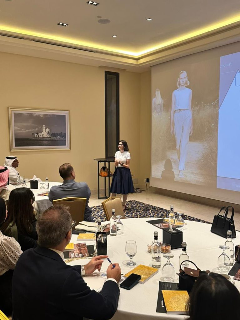 وتضمّن البرنامج ماستر كلاس قدمته الدكتورة آنا زينولا، مديرة المدرسة والتعليم في معهد مارانجوني الرياض، بعنوان “فهم الرفاهية: من الندرة الحصرية إلى المكانة اليومية”، حيث تناولت الجلسة التحولات التي يشهدها مفهوم الفخامة عالمياً، من التصورات التقليدية القائمة على الحِرفية والندرة، إلى مفاهيم أكثر مرونة ترتبط بالهوية الثقافية وسهولة الوصول وتغيّر توقعات المستهلكين.