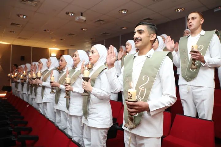 وقالت عميد الكلية، العميد الطبيب خلود المطر، إن اليوم يشهد فوجاً يخط فصلاً جديداً في سجل الكلية، حيث لا تُوزن المهنة إلا بميزان الكفاءة، ولا تُحمل إلا بصدق الانتماء، مؤكدة أن ثمار الجهد العلمي تتجلى اليوم في مشاريع تخرج أرست البذرة الأولى للفكر البحثي.