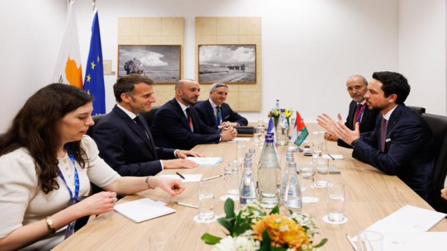 المرفأ- التقى سمو الأمير الحسين بن عبدﷲ الثاني، ولي العهد، الجمعة، الرئيس الفرنسي إيمانويل ماكرون، على هامش الاجتماع غير الرسمي للاتحاد الأوروبي والشركاء الإقليميين في نيقوسيا.
