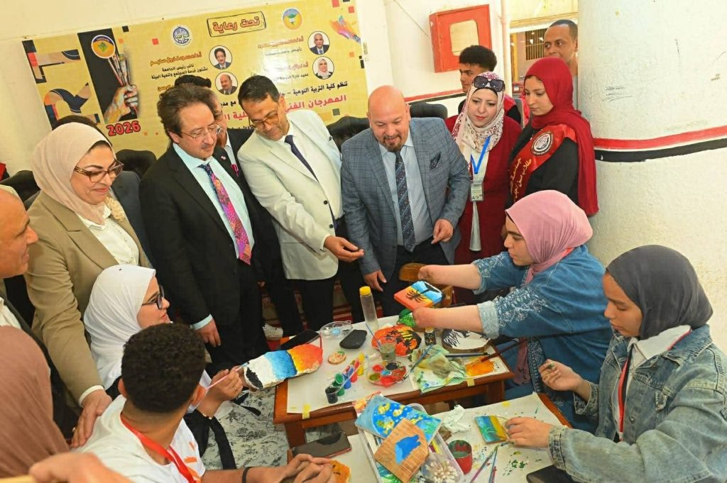 وتضمنت الفعاليات تنظيم ورش عمل فنية متخصصة أقيمت من خلال التعاون بين الكلية ومديرية التربية والتعليم بالغربية، حيث شارك فيها ما يقرب من 60 طالبًا وطالبة من المبدعين بمدارس التعليم العام والفني، وشهد المهرجان تفاعلًا حيًا بين الأساتذة المتخصصين بقسم التربية الفنية بالكلية وموجهي التربية الفنية والطلاب المشاركين على اختلاف أعمارهم، وذلك لتدريبهم على تقنيات الرسم الحديثة وكيفية التعامل مع الأحجار والأخشاب وتحويلها إلى أعمال فنية، الأمر الذي ساهم بدوره في صقل مهاراتهم اليدوية وتعزيز قدرتهم على الابتكار باستخدام خامات البيئة المحلية.